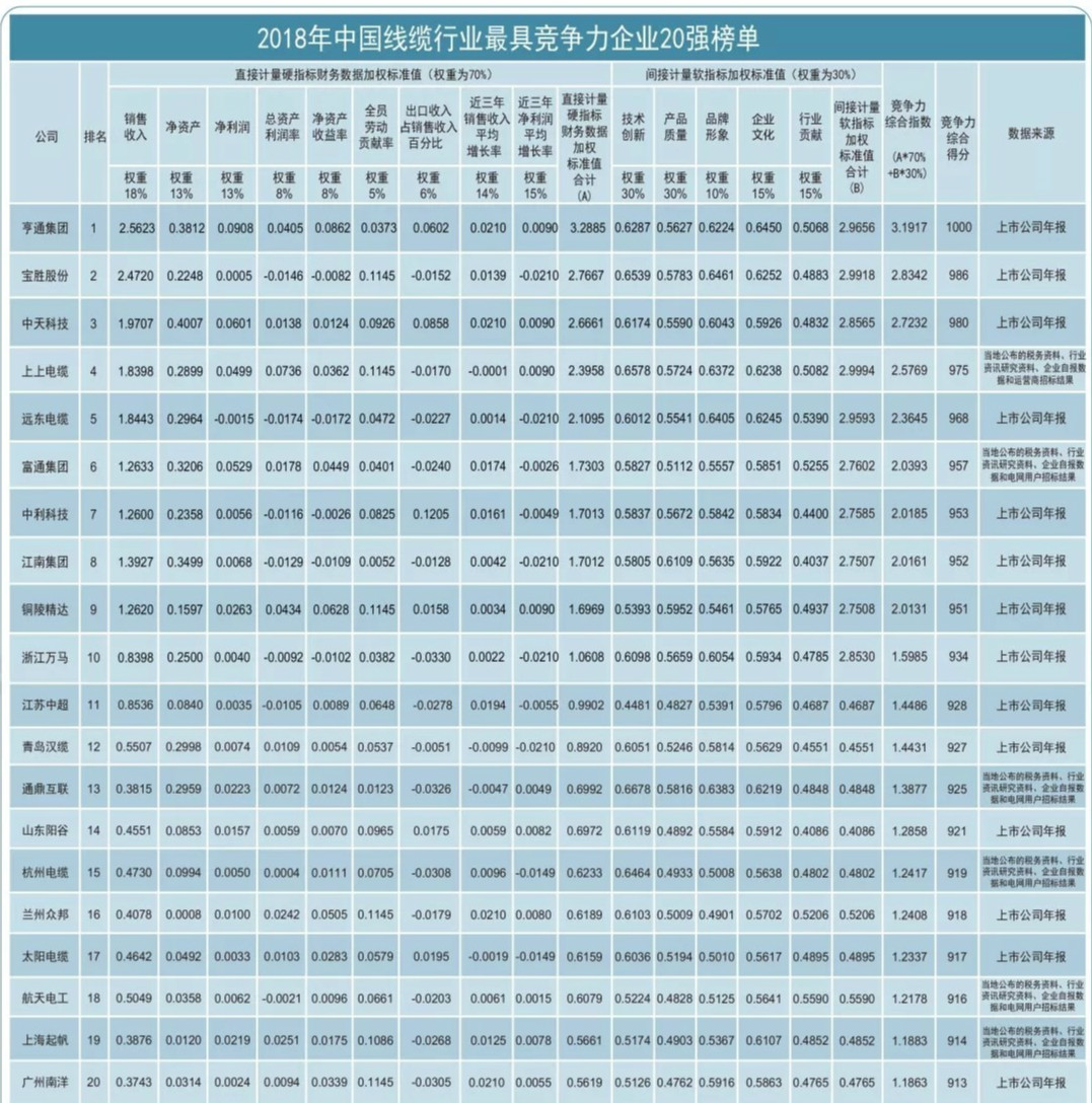 《2018年中國線纜產(chǎn)業(yè)100強(qiáng)》名單評選結(jié)果清晰顯示全國線纜企業(yè)競爭力態(tài)勢。從整體的競爭力表現(xiàn)來看,線纜行業(yè)整體競爭力表現(xiàn)比較平穩(wěn)。優(yōu)勢企業(yè)的基礎(chǔ)競爭力(直接計(jì)量硬指標(biāo)財(cái)務(wù)數(shù)據(jù))得分在相關(guān)子行業(yè)總排名的位次得到進(jìn)一步鞏固,亨通、寶勝、中天、上上、遠(yuǎn)東、富通等企業(yè)仍然保持領(lǐng)先, 上海起帆電纜等保持快速上升的態(tài)勢。