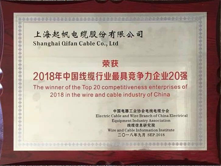 2018線纜行業(yè)前20強(qiáng),上海起帆列位其中!