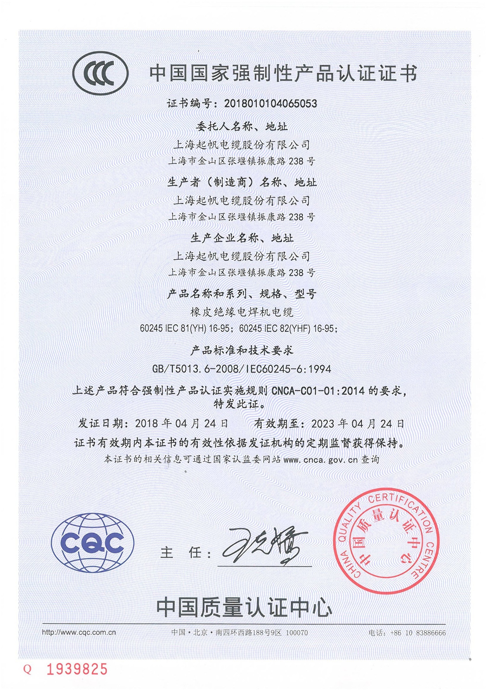 中國國家強制性產(chǎn)品認證證書YH電焊機電纜