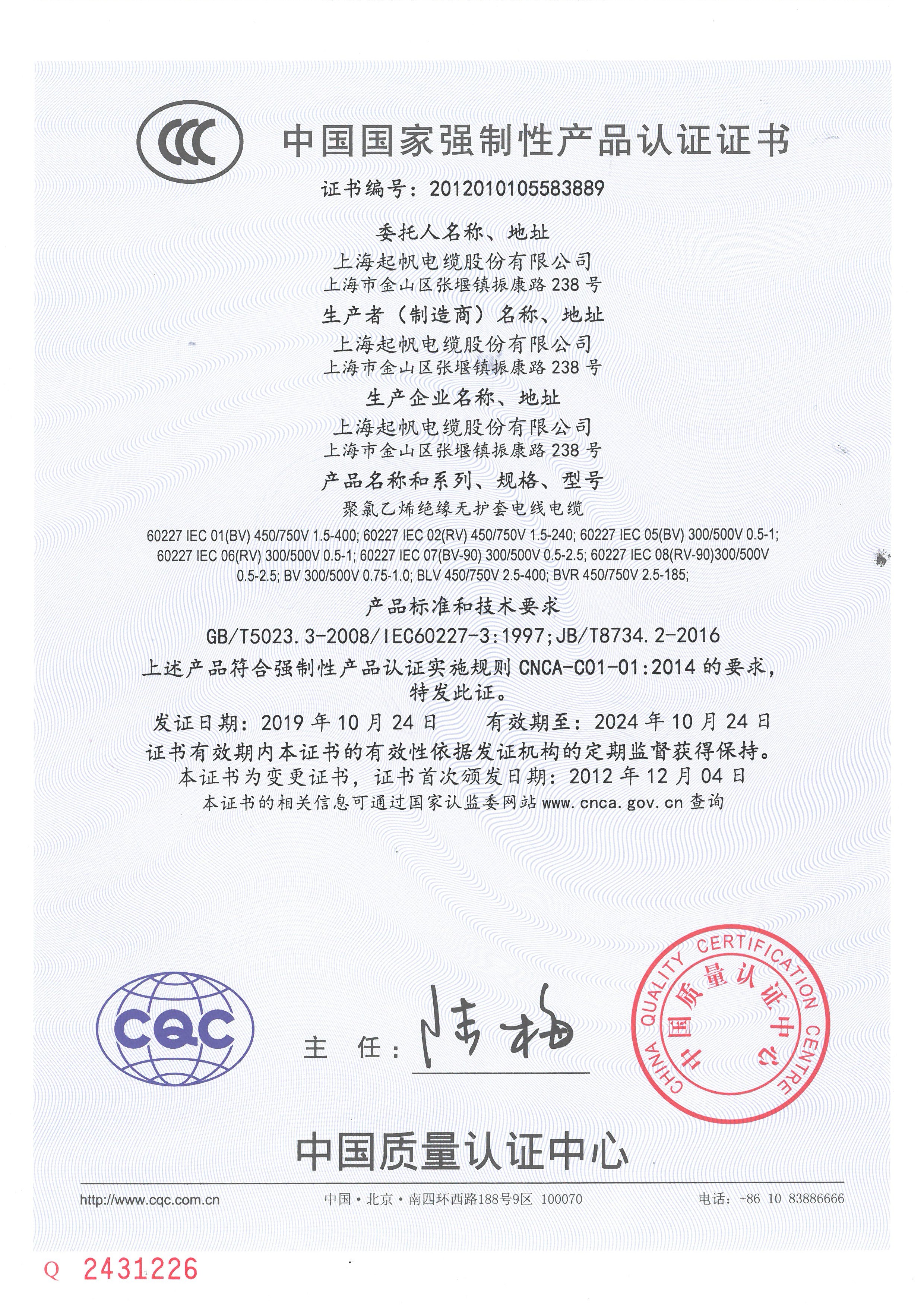 中國國家強制性產(chǎn)品認證證書